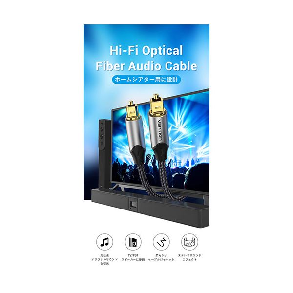 【3本セット】 VENTION 光ファイバー オーディオケーブル アルミニウム合金 2m グレー BA-5688X3