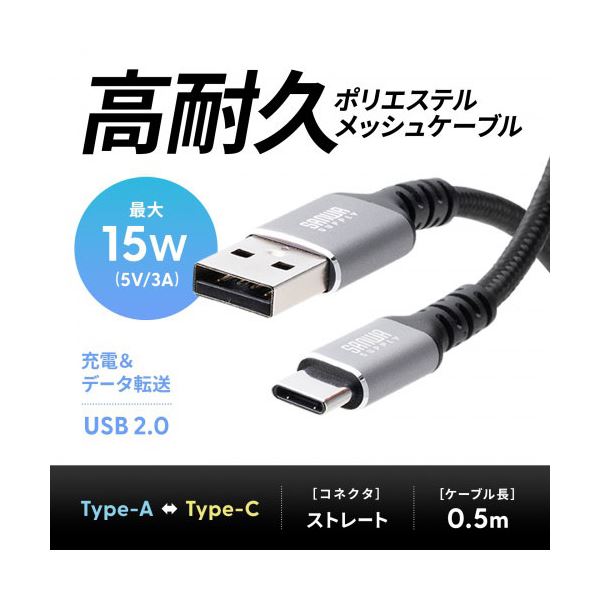 【5本セット】 サンワサプライ USB 2.0 Type-Cケーブル C-A ストレート 0.5m KU-CA05TKX5