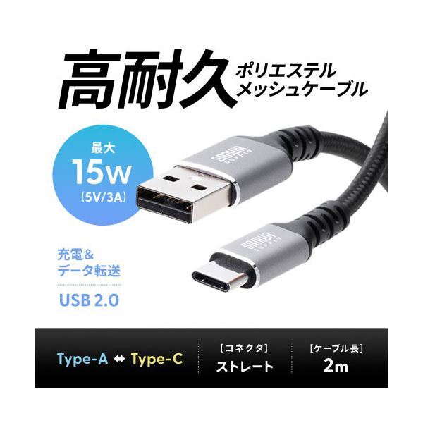 【3本セット】 サンワサプライ USB 2.0 Type-Cケーブル C-A ストレート 2m KU-CA20TKX3