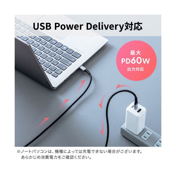 ●急速充電、最大PD60W(20V3A)に対応しています。
