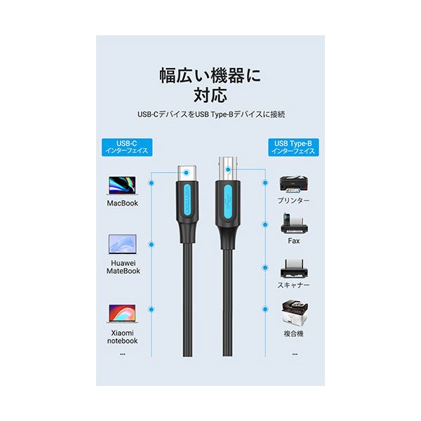 【5本セット】 VENTION USB 2.0 C Male to B Male 2Aケーブル 0.5m ブラック CQ-8296X5