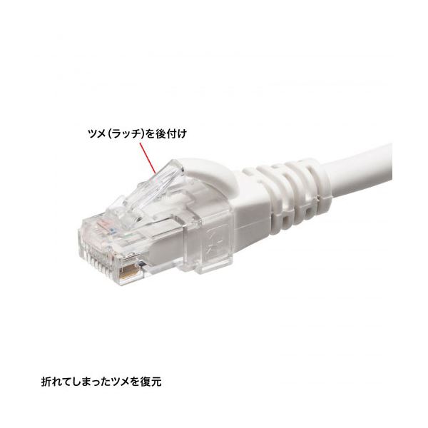 ●敷設済のLANケーブルでツメ(ラッチ)が折れてしまった際に、ケーブルを張り替える事なく、コネクタの復元ができます。