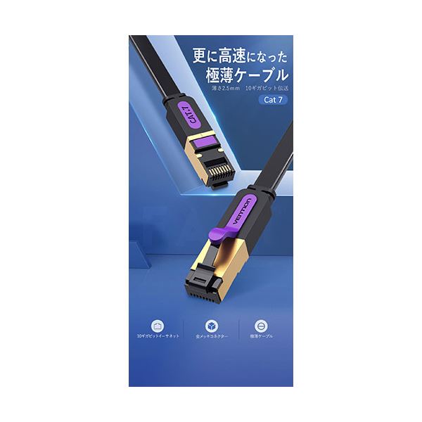 【5本セット】 VENTION Cat.7 薄型LANケーブル 0.5m ブラック IC-9426X5