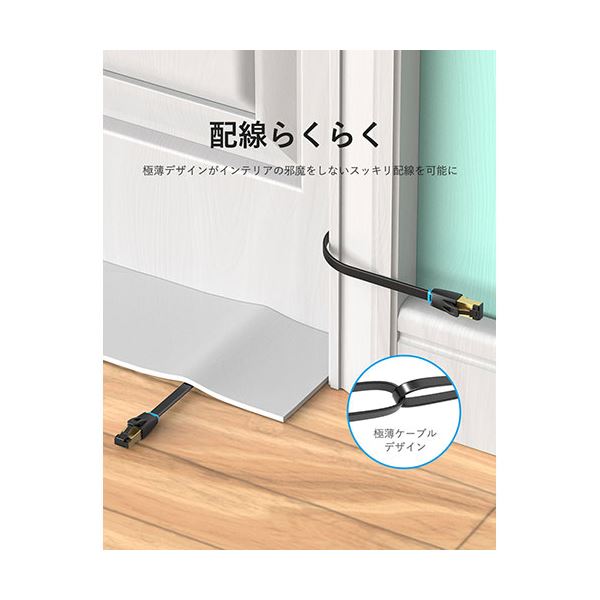 【5本セット】 VENTION Cat.8 薄型LANケーブル 1.5m ブラック IK-9068X5