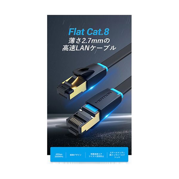 【3本セット】 VENTION Cat.8 薄型LANケーブル 2m ブラック IK-9075X3