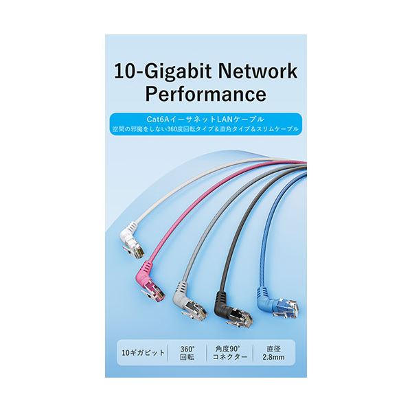 【10本セット】 VENTION Cat.6a LANケーブル UTP 直角コネクタ 360°スイングタイプ ホワイト 0.5m ホワイト IB-0446X10