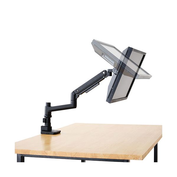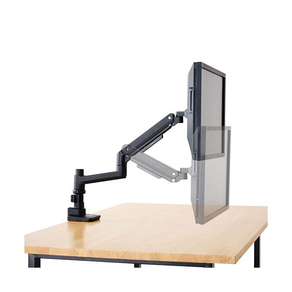 ■17インチ〜49インチサイズのモニターに対応する高耐荷重ガススプリング式のポールマウントタイプ シングルモニターアームです。