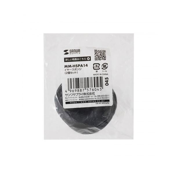 【5セット】 サンワサプライ イヤースポンジ 2個セット MM-HSU18BK/MM-HS407BKに対応 MM-HSPA14X5