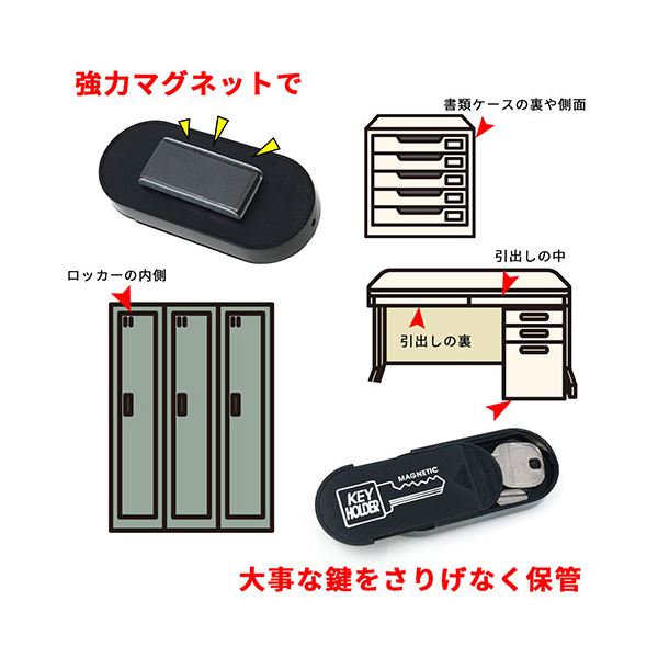 ●デスクの引き出しの中や下、書類ケースの裏や側面、ロッカーの内側、家のポストの下や内側など金属のある所ならどこでも設置可能。
