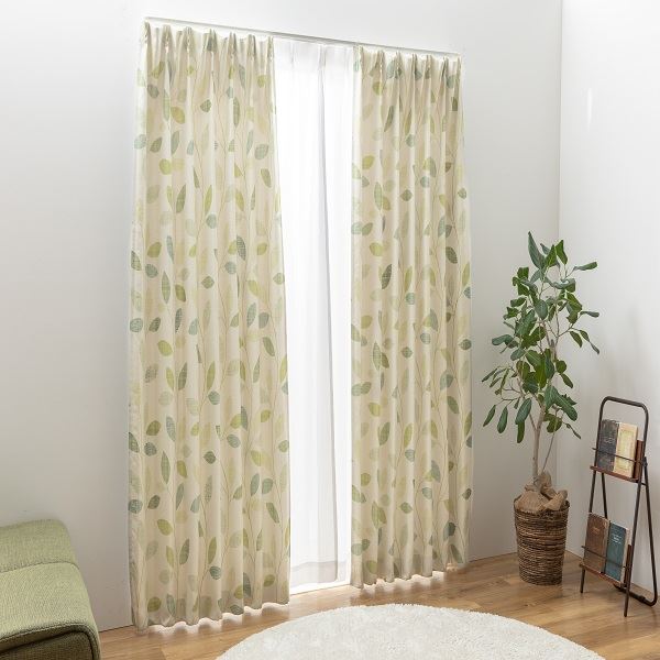 日本製 カーテン ドレープカーテン 遮光 3級遮光 洗える シンプル リーフ ナチュラル カジュアル タッセル付き ウォッシャブル 【幅100cm 長さ120cm 2枚 グリーン】
