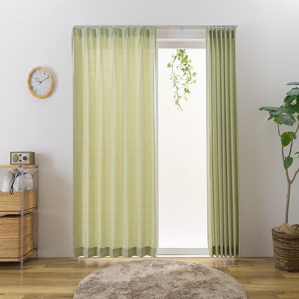 日本製 カーテン ドレープカーテン 防炎 洗える シンプル ナチュラル タッセル付き ウォッシャブル【幅100cm 長さ115cm 2枚 グリーン】