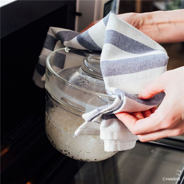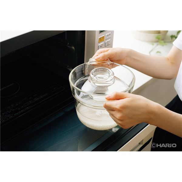 中身が見えて、ご飯が炊ける様子が見える。ニオイ移りやニオイ残りがしにくく、炊飯以外の様々なレンジ調理が楽しめる。パーツは本体とフタのみで、食洗機対応。ガラス部分は、HARIOが製造する100%天然鉱物から作られている耐熱性に優れた耐熱ガラス素材「HARIO Glass」を使用。
