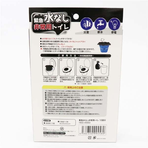 【2個セット】 ヒロ・コーポレーション 緊急 水なし非常用トイレ(10回分) HED-4560