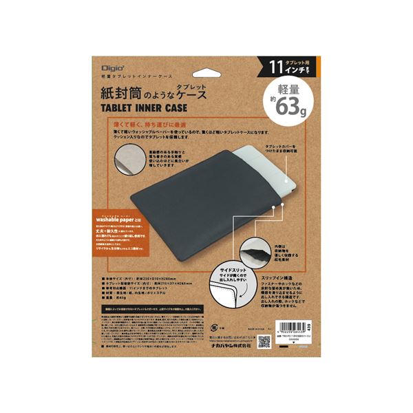 ●PC/タブレット用の軽量インナーケースシリーズ。【ウォッシャブルタイプ】<紙封筒のようなインナーケース>ウォッシャブルペーパー…見た目はクラフト紙のようですが、普通の紙とは違い、丈夫で耐久性に優れています。水に濡れても乾かすことで繰り返し使用でき、また布のように縫製する事も可能です。天然繊維を原料としており、リサイクルも生分解もできるエコ素材です。