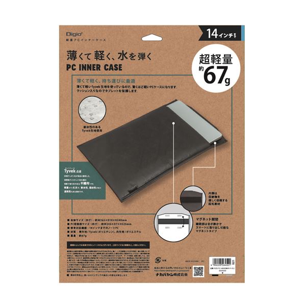 ●PC/タブレット用の軽量インナーケースシリーズ。【タイベックタイプ】<薄くて軽く、水を弾くインナーケース>タイベック…米国デュポン社が独自に開発した、高密度ポリエチレン100%製の強靭で耐久性のある不織布です。軽量かつ丈夫で、耐水性、撥水性があり、通気性もある素材です。