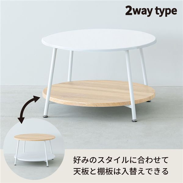 ヴィンテージ棚付リビングテーブル(ナチュラル) 【直径60cm】 サイドテーブル センターテーブル 机 つくえ 木製 木目 丸 モダン ひとり暮らし 収納 韓国インテリア NK-560 組立品