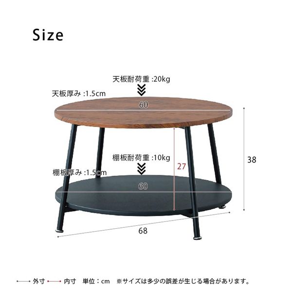 ヴィンテージ棚付リビングテーブル(ブラウン/茶) 【直径60cm】 サイドテーブル センターテーブル 机 つくえ 木製 木目 丸 モダン ひとり暮らし 収納 韓国インテリア NK-560 組立品