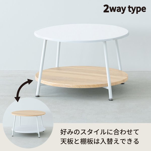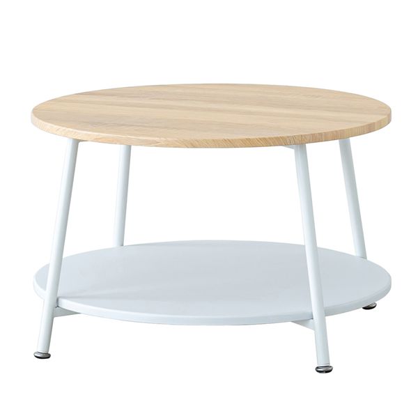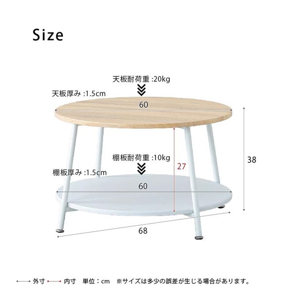 【2個セット】ヴィンテージ棚付リビングテーブル(ナチュラル) 【直径60cm】 サイドテーブル センターテーブル 机 つくえ 木製 木目 丸 モダン ひとり暮らし 収納 韓国インテリア 業務用 NK-560 組立品