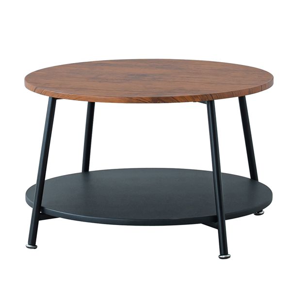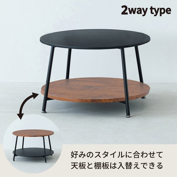【2個セット】ヴィンテージ棚付リビングテーブル(ブラウン/茶) 【直径60cm】 サイドテーブル センターテーブル 机 つくえ 木製 木目 丸 モダン ひとり暮らし 収納 韓国インテリア 業務用 NK-560 組立品