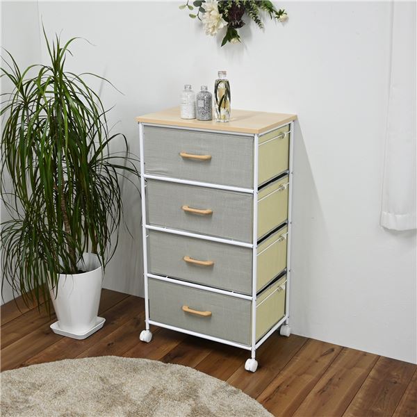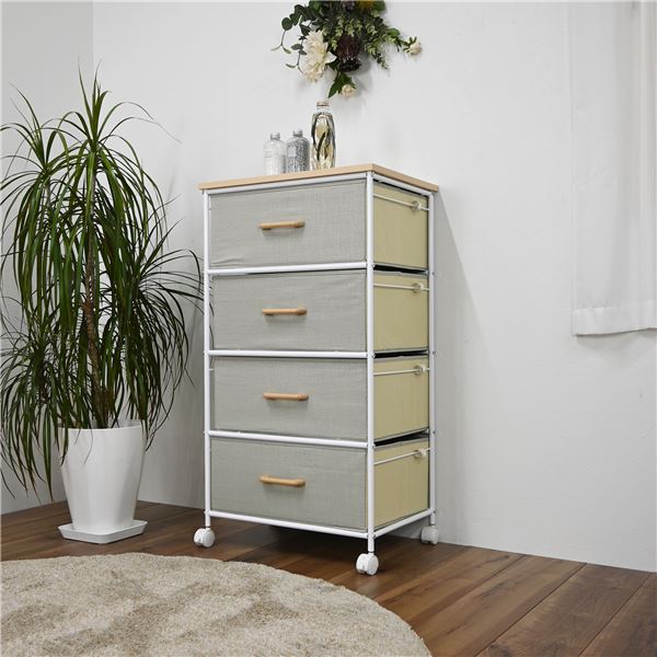 ●お部屋に馴染みやすい優しい色合いのファブリックチェスト4段。