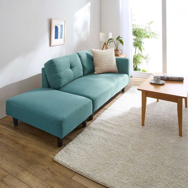 カジュアル カウチソファ ブルー オットマン付 肘付き 2人掛け フロアソファ ローソファ