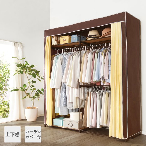 サイズが選べるカバー付クローゼットハンガー 幅120-150cm・伸縮 組立式