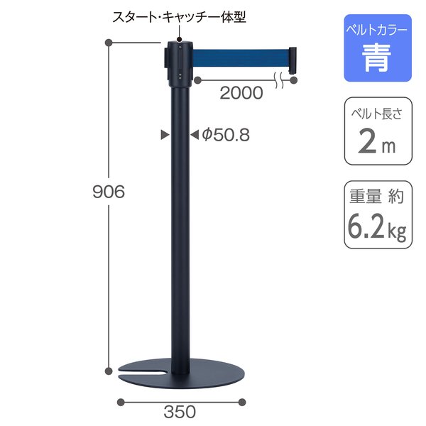 テラモト ベルトパーテーションスタンドUN ブラック ベルト青 組立式
