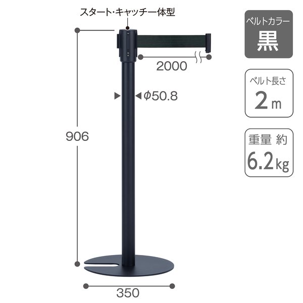 テラモト ベルトパーテーションスタンドUN ブラック ベルト黒 組立式