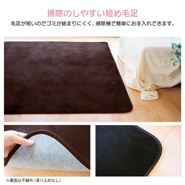 肌触りのよい毛足の短い使いやすいシンプルな軽量ラグ。ご家庭の洗濯機で洗えるので、いつでも清潔にお使いいただけます。薄手の軽量タイプなので、移動や片付けもラクチン。オールシーズン使える万能ラグです。ラグの裏面はフェルト状(不織布)だから、床を傷付けにくく、賃貸やアパート暮らしの方でも安心してお使いいただけます。