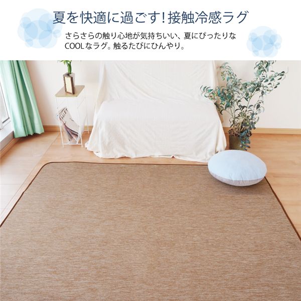 接触冷感 ラグ マット 約180×180cm 2帖 ブラウン 軽量 洗える ウォッシャブル 掃除簡単 COOL 霜降り【代引不可】