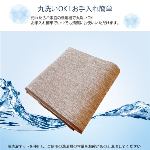 触ったところからひんやり感じる冷感生地を使ったラグ。ご家庭の洗濯機で洗えるので、いつでも清潔にお使いいただけます。薄手の軽量タイプなので、移動や片付けもラクチン。さらっとした肌触りで暑い夏シーズンに向けて使えるラグです。ラグの裏面はフェルト状(不織布)だから、床を傷付けにくく、賃貸やアパート暮らしの方でも安心してお使いいただけます。