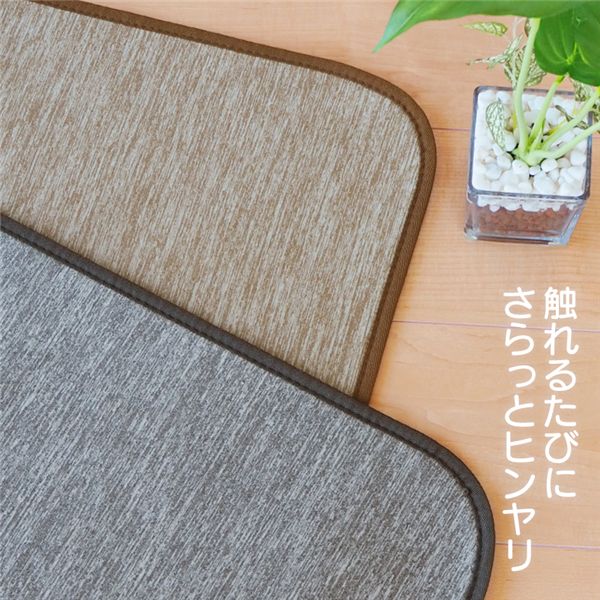 触ったところからひんやり感じる冷感生地を使ったラグ。ご家庭の洗濯機で洗えるので、いつでも清潔にお使いいただけます。薄手の軽量タイプなので、移動や片付けもラクチン。さらっとした肌触りで暑い夏シーズンに向けて使えるラグです。ラグの裏面はフェルト状(不織布)だから、床を傷付けにくく、賃貸やアパート暮らしの方でも安心してお使いいただけます。