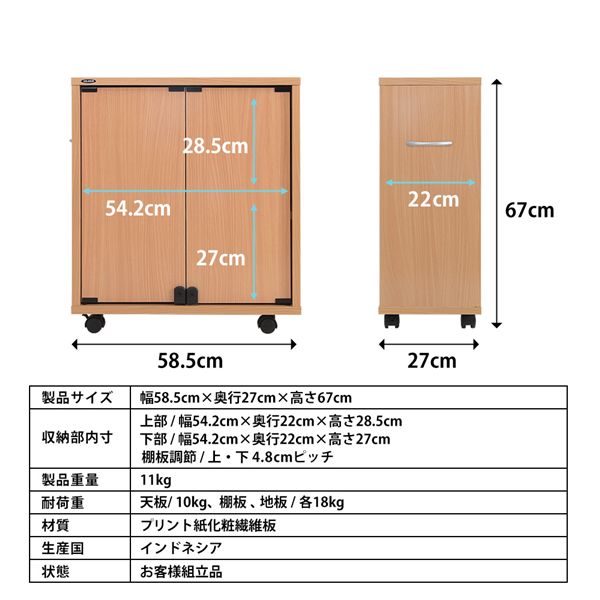 【内寸】[上段]幅54.2cm×奥行22×高さ28.5cm [下段]幅54.2×奥行22×高さ27cm ※棚板調節:上・下 4.8cmピッチ