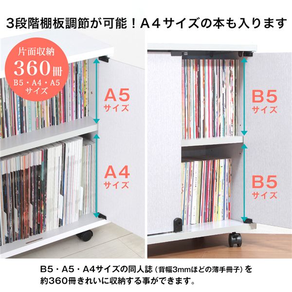 両面収納で薄型同人誌が約360冊収納可能。※A5サイズ/A4サイズ、B5/B5サイズ用。