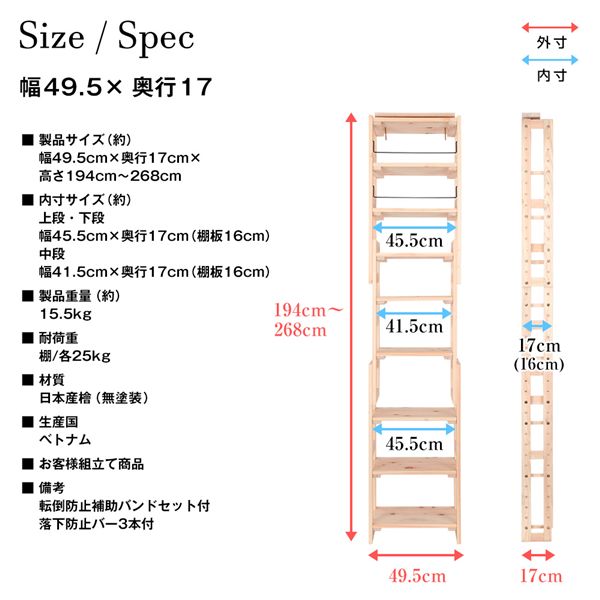 【外寸】幅29.5×奥行17×高さ194-268cm