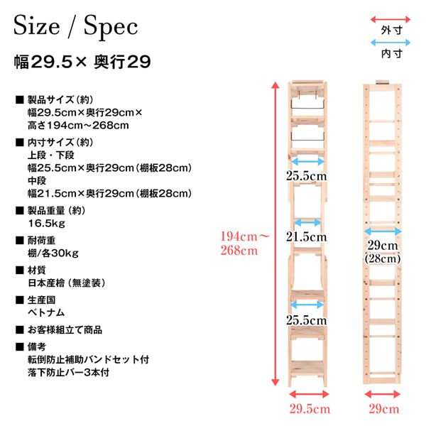 【外寸】幅29.5×奥行29×高さ194-268cm