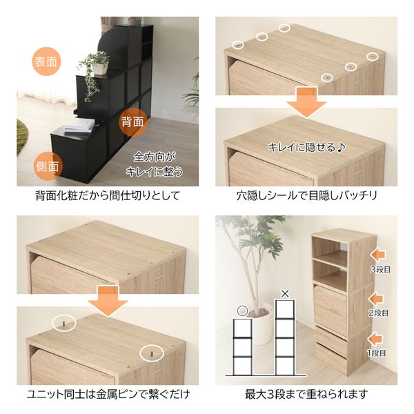 組み合わせ自由 キューブボックス 引き出し ブラック 組立品【代引不可】