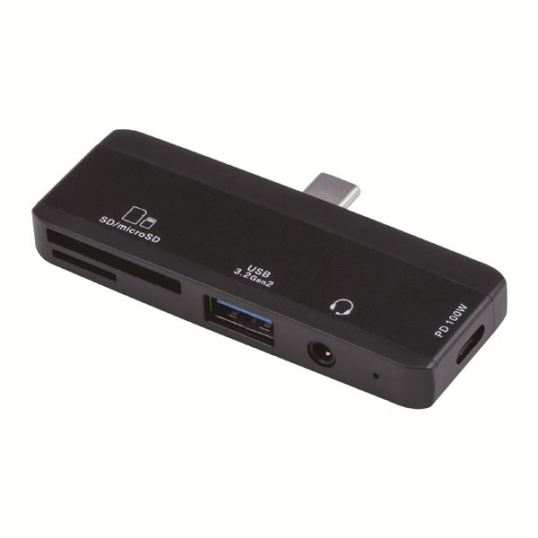 ●PC・タブレット・スマホ等に直接挿せる2ポートコンボハブ。USB Type-A USB3.2(Gen2)ポートは、10Gbpsの超々高速データ転送が可能。<Type-A(USB3.2 Gen2)+Type-C(PD1000W対応USB2.0)+3.5mm4極ミニプラグ+SDカードリーダー/ライター>