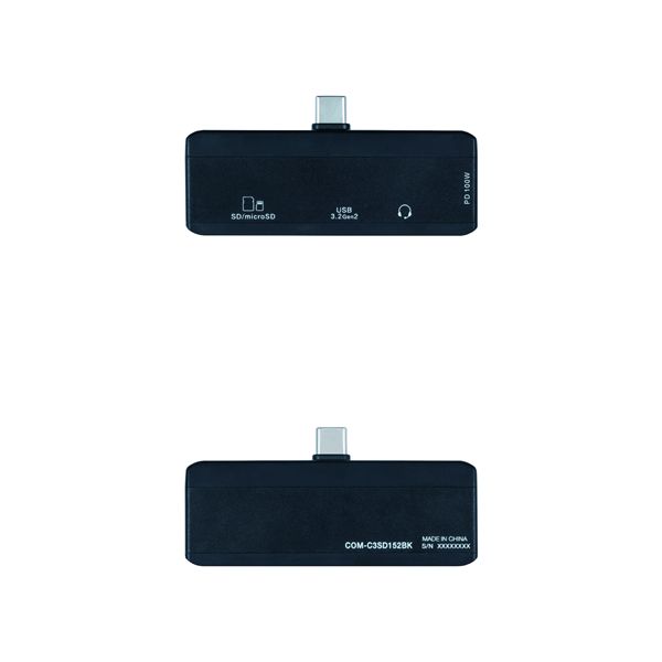 ●Digio2 Type-C USB3.2Gen2(A)+2.0(C) 2ポートコンボハブ SDカードリーダーライター/3.5mm4極付 ブラック COM-C3SD152BK