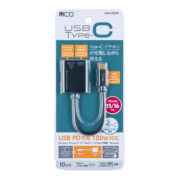 ●MCO Type-C イヤホン変換ケーブル USB PD対応 ブラック SAD-CE05PBK