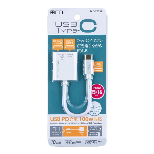 MCO Type-C イヤホン変換ケーブル USB PD対応 SAD-CE05PWH ホワイト
