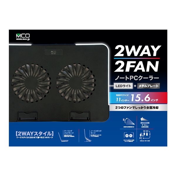 MCO 2WAY 2FAN ノートPCクーラー スタンダードサイズ NSF-09BK