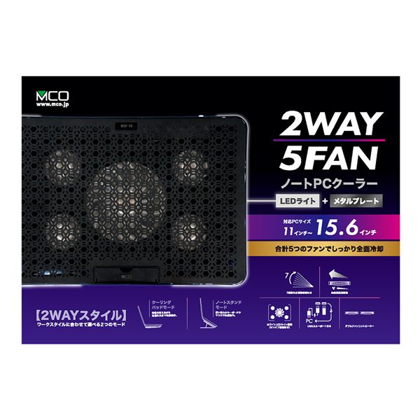 MCO 2WAY 5FAN ノートPCクーラー スタンダードサイズ NSF-10BK