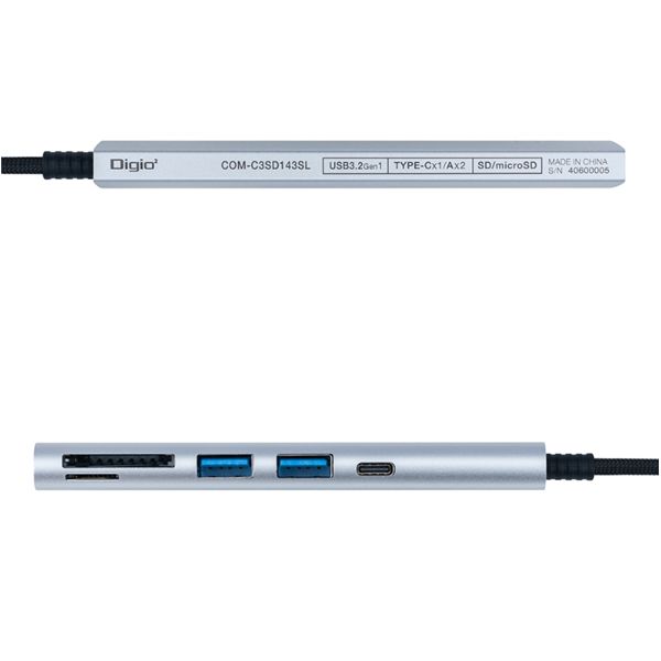 ●Digio2 Type-C USB3.2Gen1(A2+C) 3ポート アルミコンボハブ SDカードリーダーライター付 シルバー COM-C3SD143SL
