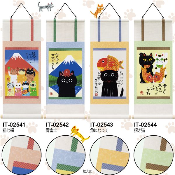 ●和風、洋風どちらのお部屋にもぴったりなモダンなミニミニ掛け軸が新登場!猫たちが幸せを呼び込みます。