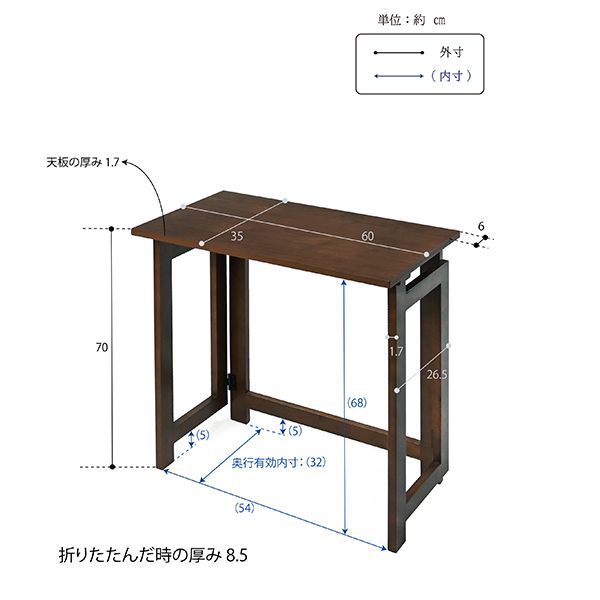 ●落ち着いたブラウン色が魅力の折りたたみデスクです。