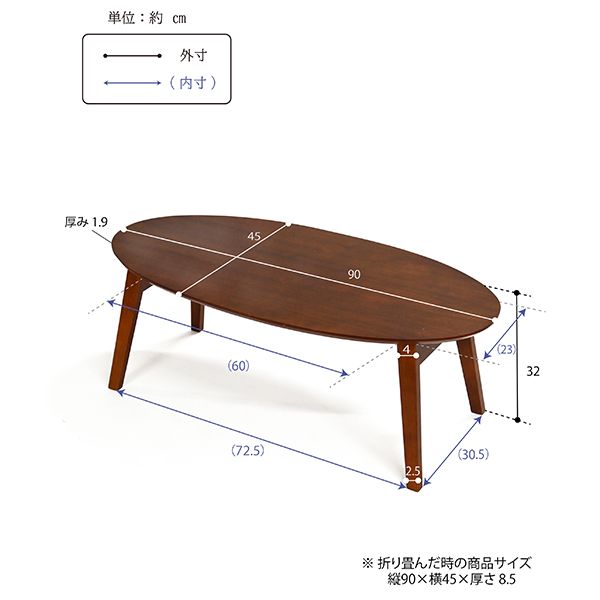 ●使用しない時は折り畳めるため、収納に便利です。(折り畳んだ時のサイズ 縦90×横45×厚さ8.5cm)