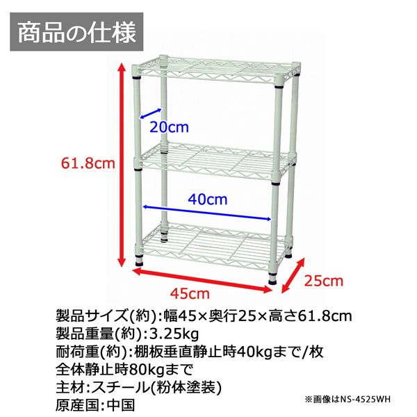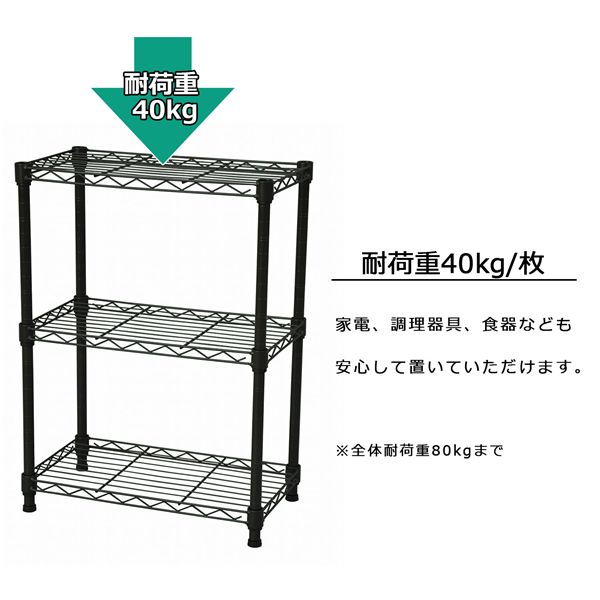(約):棚板垂直静止時40kgまで/枚、全体静止耐荷重80kgまで