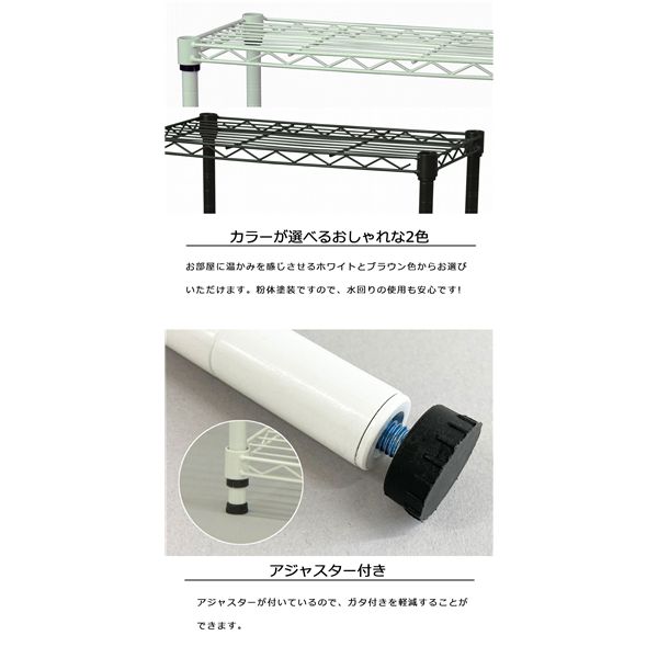 アジャスター付きの為、床に設置した時、ガタ付きを軽減することができます。