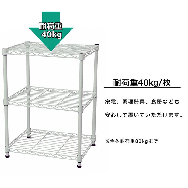耐荷重は棚板1枚あたり40kg(全体耐荷重は80kg)です。